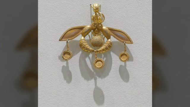 Esse Ouro Pandrant foi descoberto no cemitério de Crisolaoccus em 1 30 pol, o que significa o “poço de ouro” na antiga cidade minóica em Creta. Embora o famoso arqueólogo Sir Arthur esteja em Evans Sugerido As jóias mostraram as abelhas, o significado por trás da identidade e design das pragas nos pingentes discutem há quase um século.