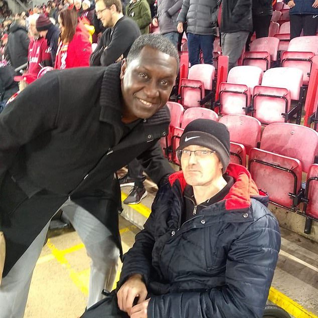 É Mark Mogon, um fã de Liverpool deficiente, Imil Hesky, que foi preso no jogador de Bornath no Antoine Semino por racismo.