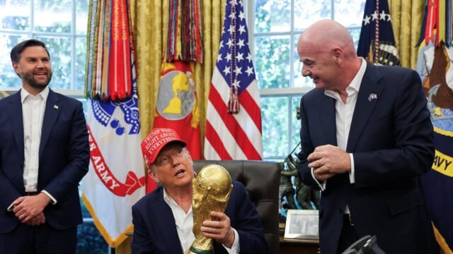 As descrições de 2026 Estará no Kennedy Center Washington DC Donald Trump confirmou isso na Casa Branca em 22 de agosto. Jiannny InfantinoPresidente da FIFA e troféu da Copa do Mundo. No entanto, a sede do evento que interpretou o confronto na fase de grupo do torneio máximo de futebol viria Las Vegas. Na verdade, FIFA Ele estava na fase final de sua negociação RedondoAcessório multimídia elegante localizado perto de icônico BarMas o presidente republicano interveio nesses esquemas.