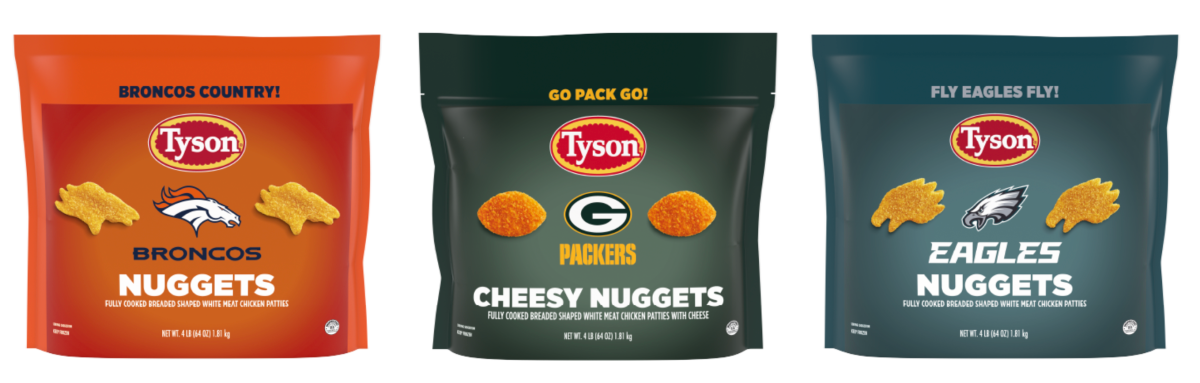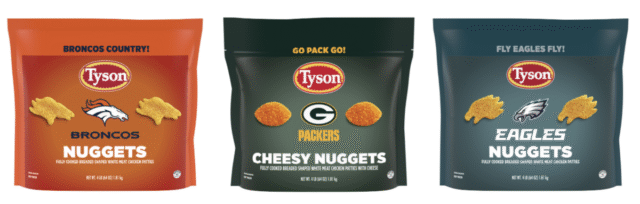 Os genes de frango inspirados no futebol de Tyson que chegarão ao co-by coned embalado é insigzzira da equipe de esportes: “Broncos World!” “Vá para o parque!” Se “Fly Eagles voar!”