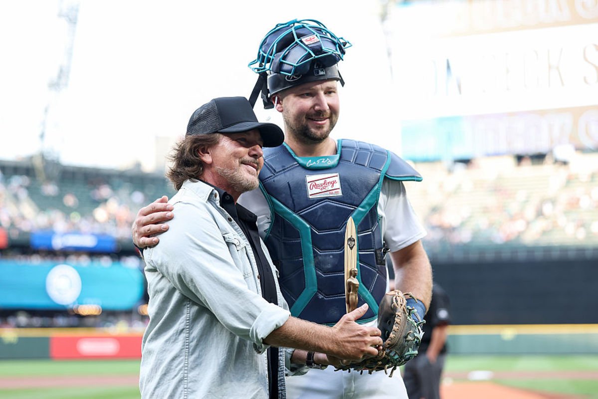 Em um post no Instagram compartilhado no Jam Official Pearl, MMB, Seattle Mariners e Cal Rale, Wedder entregou um prêmio especial para o apanhador de Mariners Rekum.