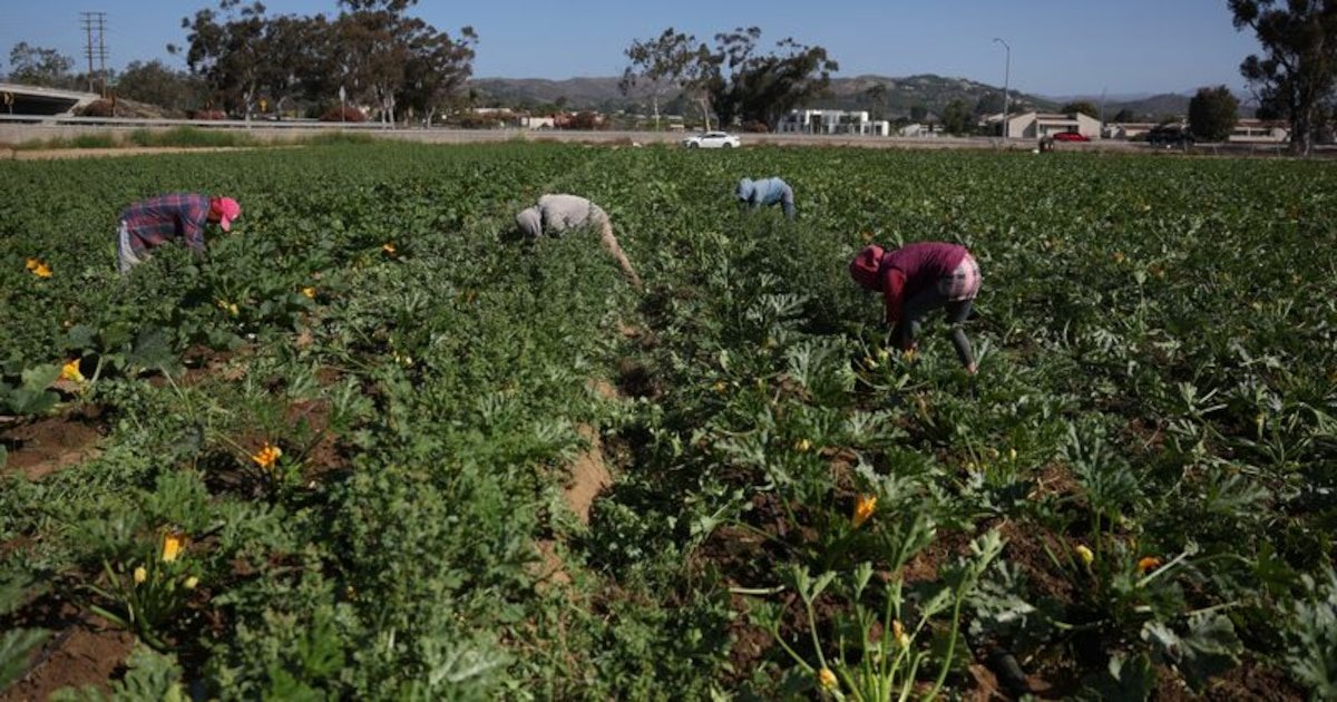 Os trabalhadores migrantes colhem durante o fim de semana. (Reuters)