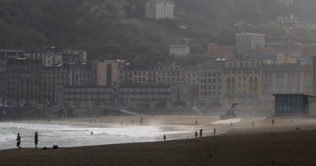 Banho e caminhada na praia de Zurriola, em San Sebastián, 22 de abril de 2026. (EFE)