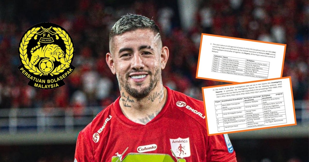 “De acordo com a reportagem oficial do comitê do comitê, o jogador e seus representantes têm informações falsas sobre seu local de nascimento. Se o avô de Holgado, Omar Eli, recebeu uma carta que nasceu em George Town, Malásia; Mas não parecia muito nascer em Caseir, Argentina “A página está na página corporal que governa.