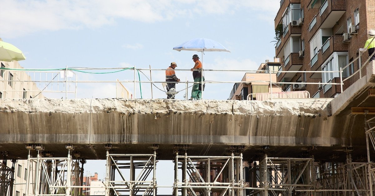 Vários pedreiros estão envolvidos na construção de edifícios residenciais em Madrid. Jesús Hellín/Europa Press