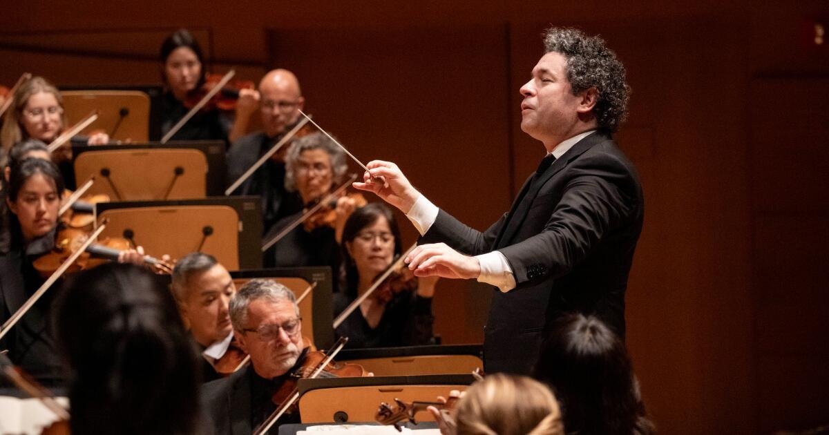 Dudamel tem uma aparência diferente hoje em dia quando está no palco de um show de La Phil depois que ele está fora para um metrô. Na noite de quinta -feira, no concerto da Walt Disney, ele sempre parece hesitar, como se soubesse o que era esperado hoje era óbvio. Mas, para grema, diligentemente, ele cresceu, crescendo, as dúvidas de dúvida duvidosas.
