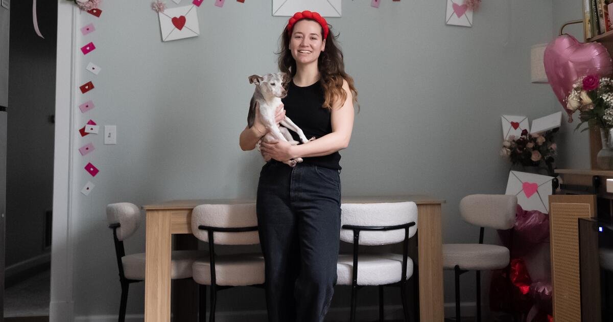 A ativista de marketing Mikayla Tencer com seu cachorro sênior,