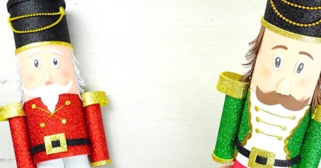 - Em primeiro lugar, deve ser feito o corpo do quebra-nozes. Os dois tubos de papelão são acompanhados da aplicação de silicone quente em todo o comprimento, resultando na estrutura das figuras.
