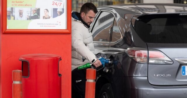 Pessoa reabastecendo em posto de gasolina em Madri (Eduardo Parra/Europa Press)