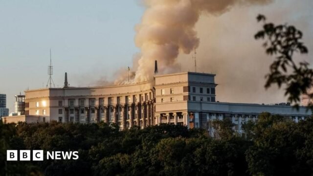 Na ascensão do ódio, o exército russo tem como alvo o gabinete ucraniano de gabinete em Kiev nesta manhã, observou a primeira greve para essa grande estrutura do governo. A primeira -ministra ucraniana Yulia Svynenko confirmou o dano, observou que o telhado e o andar superior estavam muito danificados. Os ataques são respeitados pelos ataques, com as forças aéreas ucranianas que relatam que mais de 800 drones e mísseis foram oferecidos pela Rússia à noite.