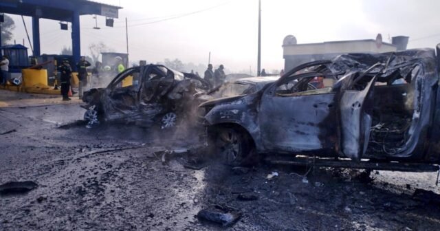 O carro colidiu com vários carros que faziam fila para pagar o pedágio.