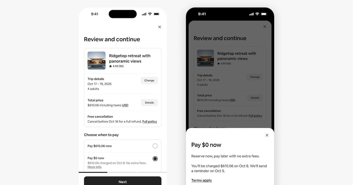 A nova opção ‘Reserve agora e pague depois’ junta-se a outras convenientes opções de pagamento oferecidas pela Airbnb, como ‘Pague parte agora e parte depois’, que permite pagar parte no momento da reserva e o restante mais próximo da data de chegada; ou ‘Pague parcelado com Klarna’.
