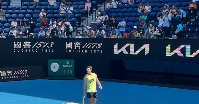 Melbourne (Austrália), 30 de janeiro (EFE).- O tenista espanhol Carlos Alcaraz treinou sexta-feira na Rod Laver Arena, quadra principal do Aberto da Austrália, poucas horas antes de disputar a semifinal contra Alexander Zverev, número três do mundo, no mesmo palco.