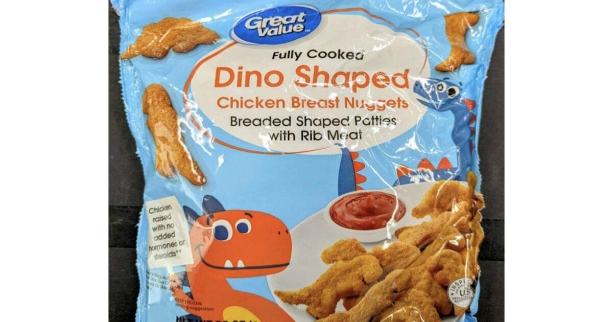 Sacos de nuggets prontos para consumo em formato de dinossauro foram vendidos nas lojas do Walmart em todo o país.