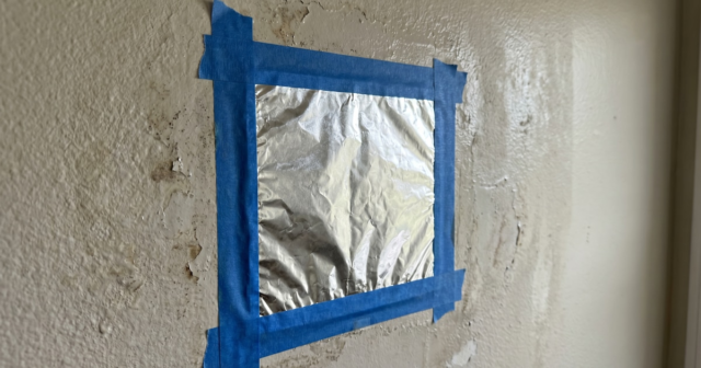 A técnica consiste em selecionar uma área de preocupação quanto à umidade e colar um pedaço de papel alumínio, selando as bordas com fita adesiva para evitar a entrada de ar. Depois de permanecer no local por 24 a 48 horas, o resultado permite distinguir entre tipos de umidade: Se ao retirar o alumínio houver água visível na lateral que esteve em contato com a parede, a umidade é de fora, o que indica possibilidade de vazamento ou falha de água.