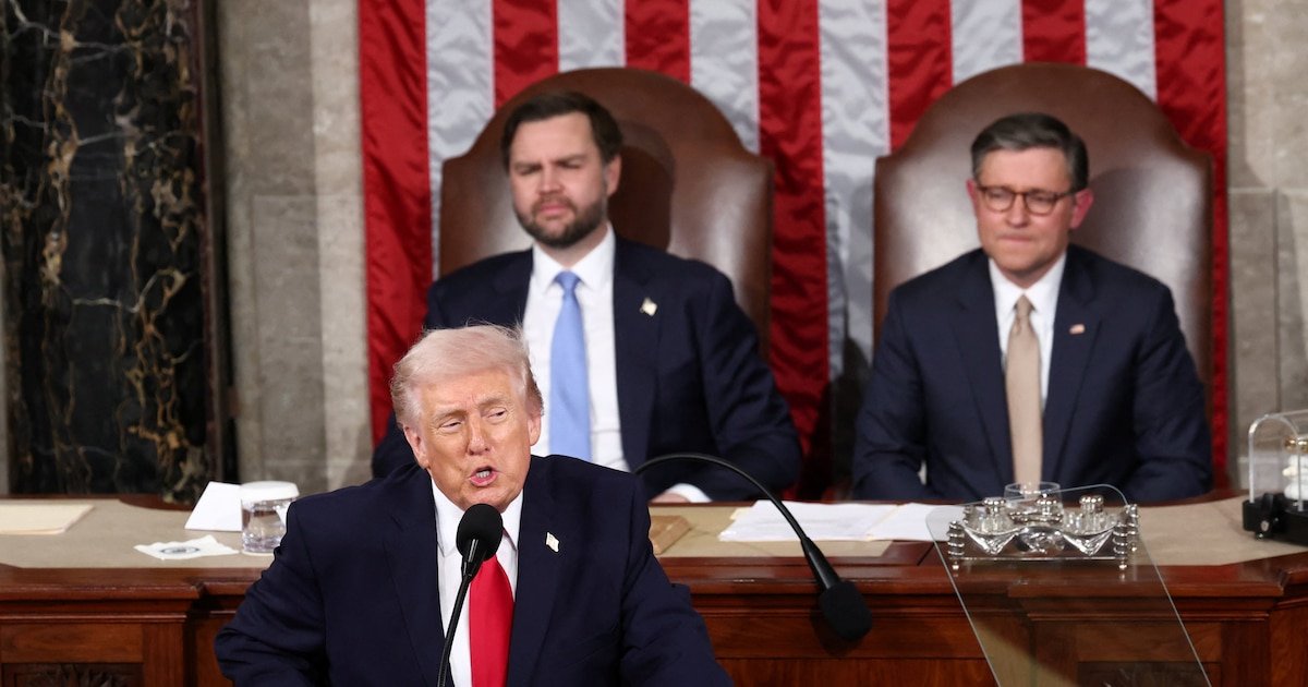 O presidente dos EUA, Donald Trump, faz seu discurso sobre o Estado da União na Câmara do Capitólio dos EUA em Washington, DC, EUA, 24 de fevereiro de 2026 (REUTERS/KEVIN LAMARQUE)