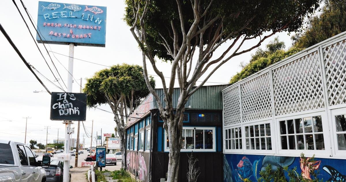 PCH Seafood Stalwart The Reel Inn servido no mercado do mercado, jantar disponível com uma nova pesca do estojo de frutos do mar.