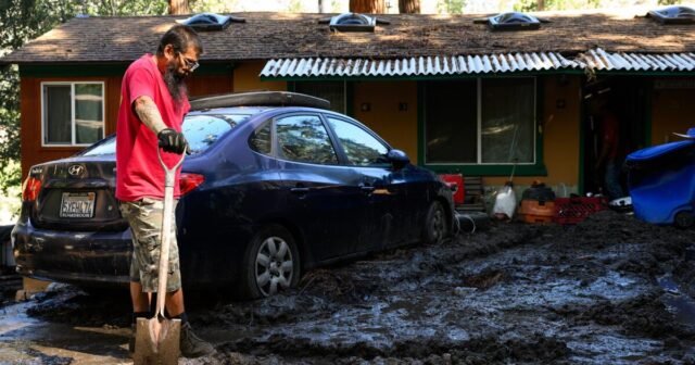 O pacote danificou 38 rodovias, empurrando o departamento de transporte da Califórnia até hoje, fechou a estrada de Angelus Oaks para Big Bear.