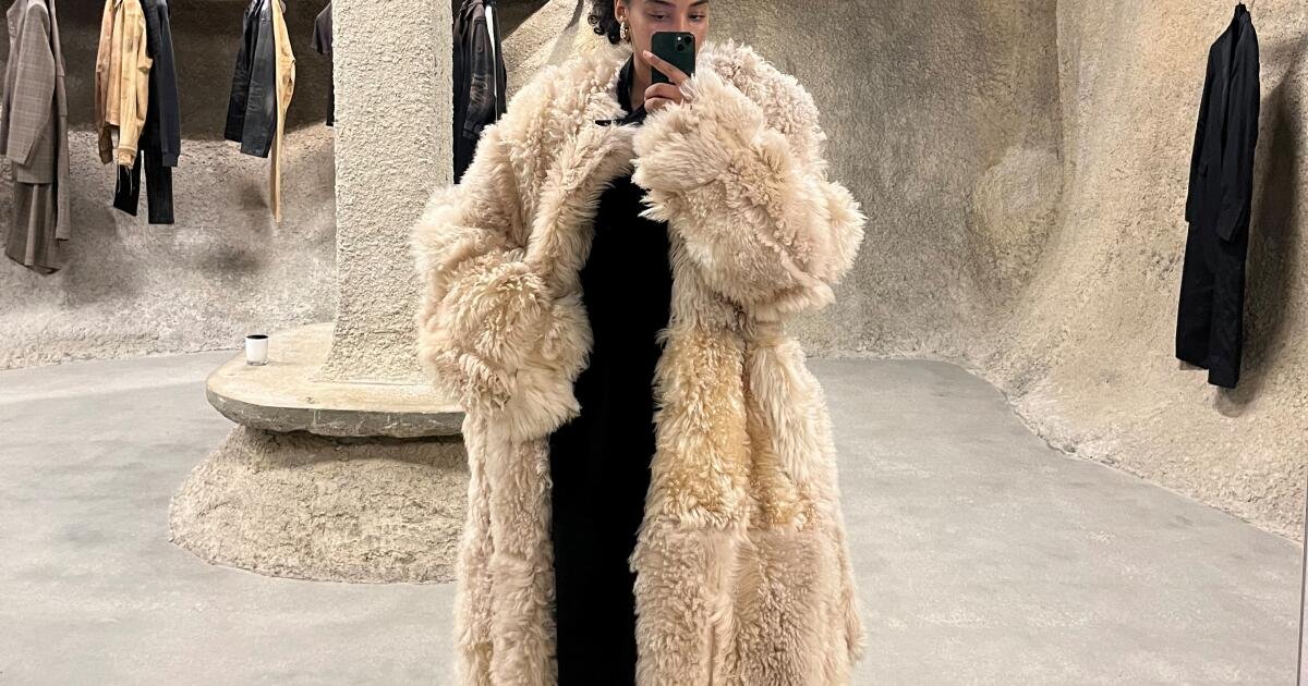 Ashantea vestindo Jaqueta Enfants Riches Déprimés S/S 2024 em pele de cordeiro em Departamento.