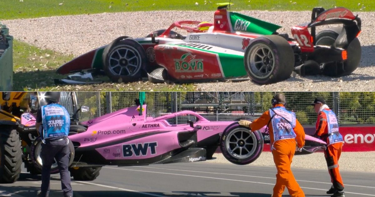 O piloto de 25 anos acaba de fazer uma boa estreia no carro Fórmula 2 na segunda rodada do dia, depois de mais um argentino Matthias Colnaghi pular no asfalto no Fórmula 3.
