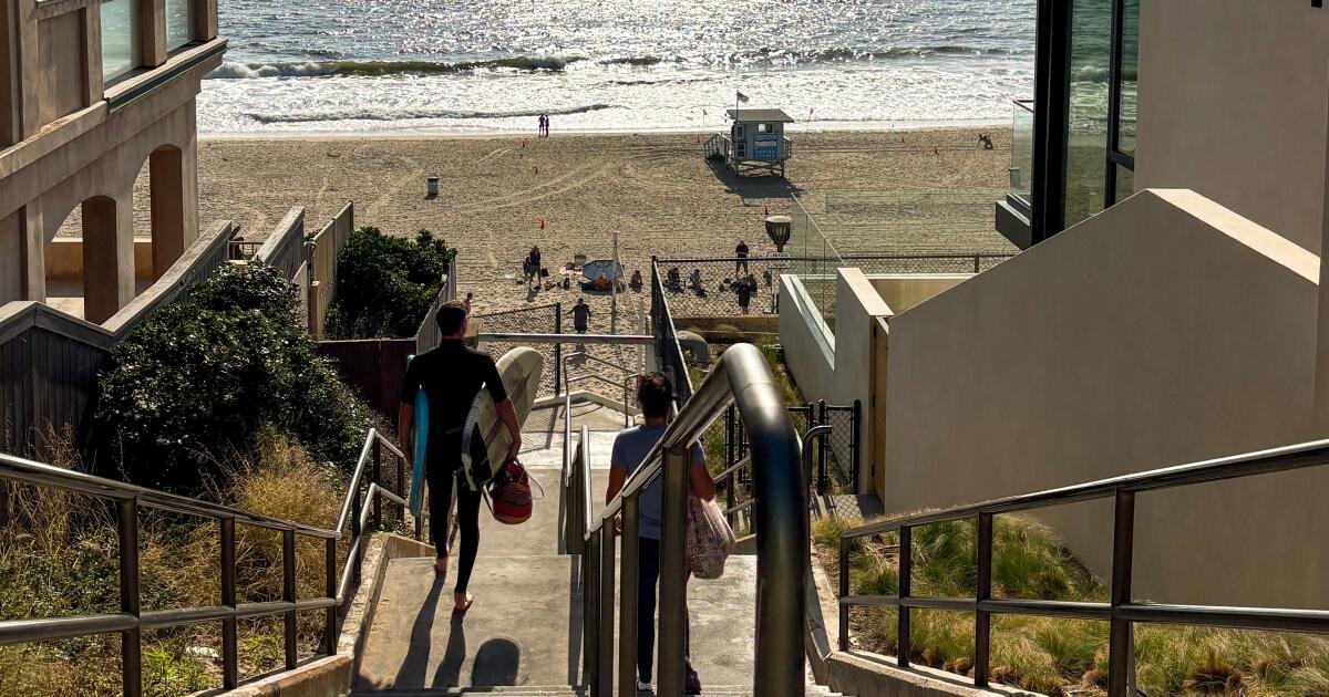 4. De Um lugar para visitarpara a esquerda para a esquerda Primeira ruae então Avenida Longa. Na esquina Praia Longa SI Avenidas Ranomasimbevocê verá a unidade histórica que vive em Long Beach, incluindo os Tongva, os habitantes originais. Criado por Millard & Associates em 1979. Vá para o leste Avenida Ranomasimbe. Vire à direita Avenida Linden e depois vire à esquerda Estilo praiano. Onde a rua termina, você verá a próxima escada à direita. Cabeça 42 passos para cima Passeio Litoral.