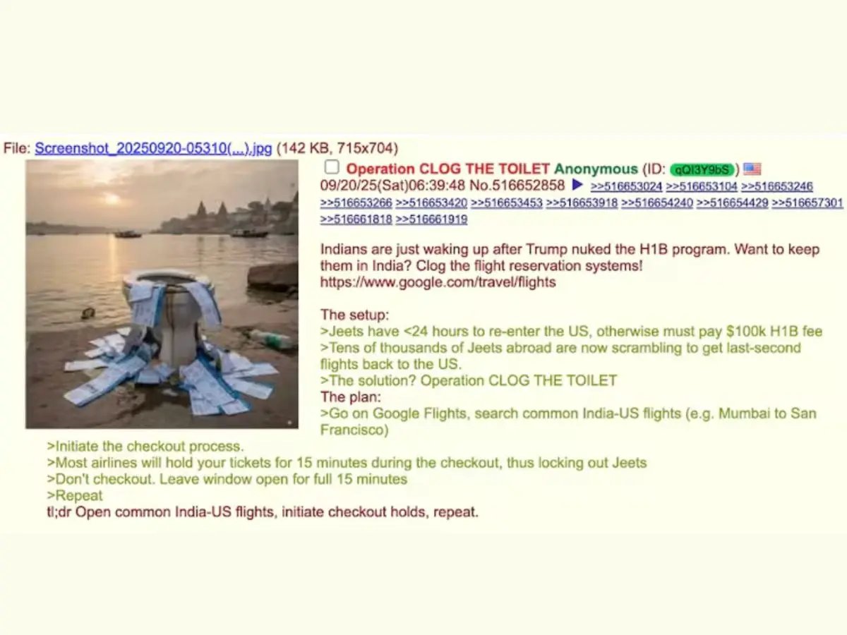 Quando as notícias se voltam, muitos indianos começaram a queimar no voo H-1B para retornar aos Estados Unidos, que estava esperando o ônus do dinheiro exigido por novos US $ 100.000. No entanto, seus esforços ficaram nervosos com o típico da tempestade on-line do esshy destro do direito no espaço que será 4chan e cabos. Essas pessoas designaram um grande vôo para os Estados Unidos e a Índia, criaram um sistema de vôo no início do tempo durante o tempo de descanso durante o tempo.