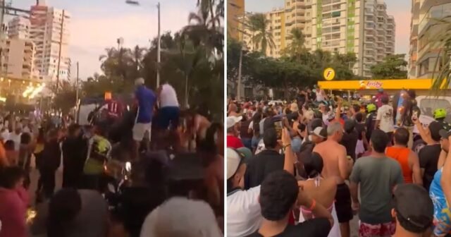 Vários moradores e turistas baixaram motos da grua apesar da intervenção da Polícia e das autoridades locais – crédito @idinaelferca19/X