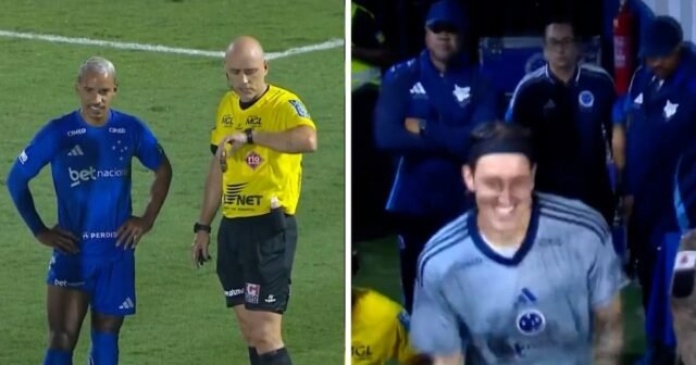 Cena inusitada no futebol brasileiro: o árbitro interrompe o jogo para que o goleiro do Cruzeiro vá ao banheiro