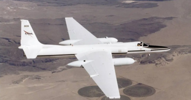 Com o mesmo tamanho de um micro-ondas, O AVIRIS-5 está instalado no nariz da aeronave ER-2 de alto desempenho, capaz de voar a mais de 18.200 metros acima do solo.