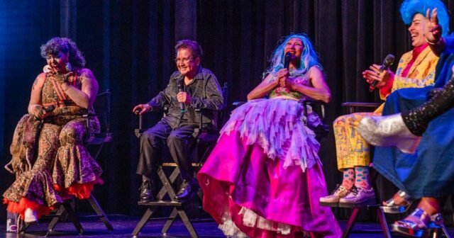 Nos bastidores do Barnsdall Gallery Theatre, em East Hollywood, drag kings e queens entram no camarim, transformando-se em estrelas brilhantes antes da revista de 22 de abril intitulada “Living Legends in Drag: A History of LGBTQ+ Arts & Culture”.