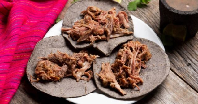 O Churrasco de borrego Uma das placas que representam bolos mexicanos, especialmente o estado de Hidalgoque é vendido de maneira tradicional em “buracos” ou forno.