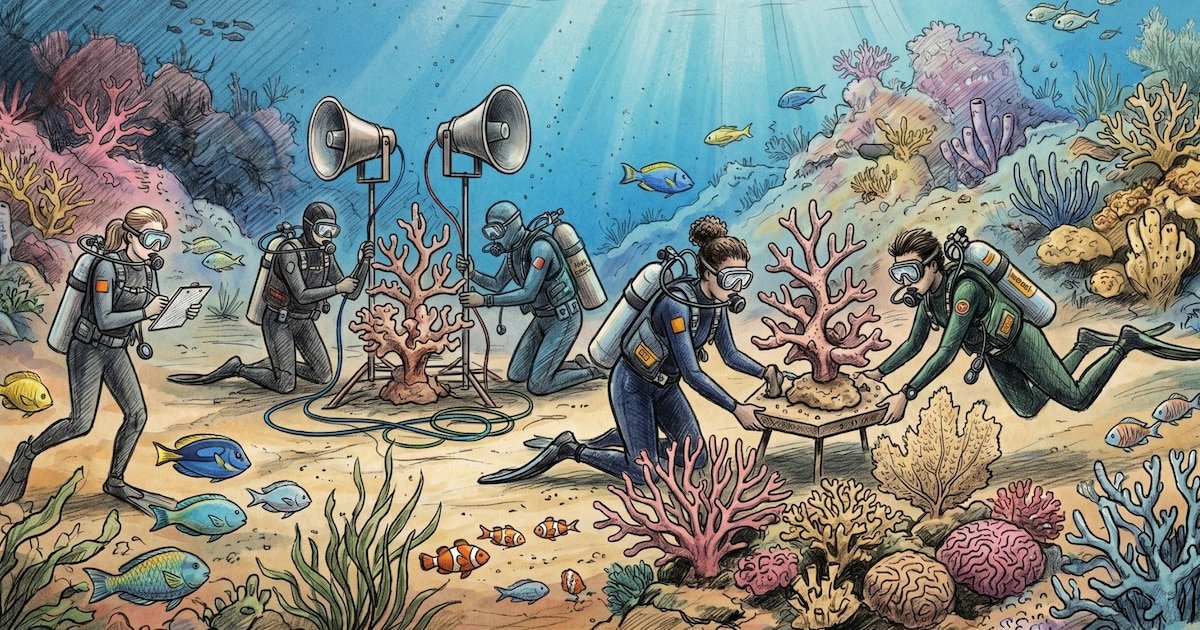 Um estudo citado, publicado em uma revista científica natureza, apoiou a eficácia do “enriquecimento acústico”. Numa experiência na Grande Barreira de Corais, na Austrália, os investigadores conseguiram duplicar a população total de peixes em áreas danificadas após seis semanas de som gravado, com um Diversidade de espécies aumenta em 50%; indicadores-chave para a sustentabilidade ambiental a longo prazo.
