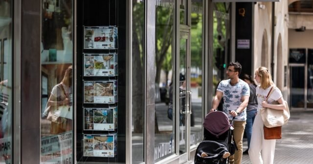 Duas pessoas olham para um anúncio de uma casa à venda numa imobiliária. (Tomàs Moyà/Europa Press)