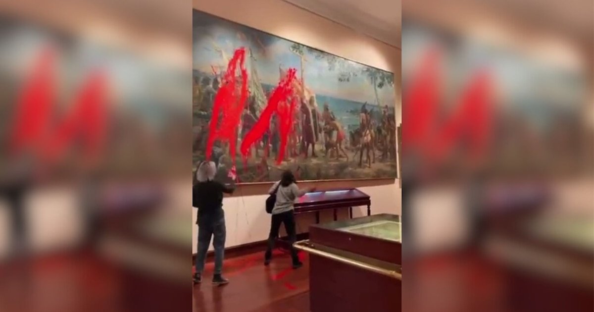 Dois ativistas jogaram uma cor vermelha na pintura de Colombo no Museu Naval de Madrid