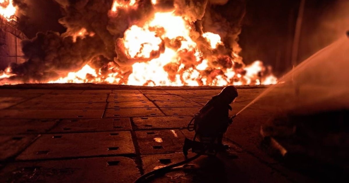 O ataque causou um enorme incêndio em um Estabelecimento de infraestrutura de combustível e energiaFonte detalhada.