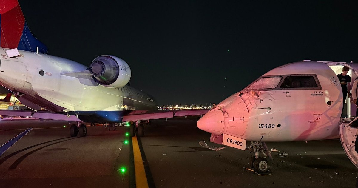 Duas partes da área Contato deltatrabalhado Uma tentativa ventosaEles entraram em choque em uma velocidade baixa quando se viraram Aeroporto de LaGuardia Nova York na quarta -feira à noite.