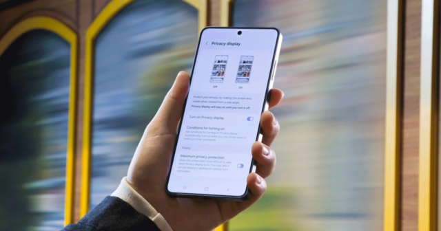 O Privacy Display emergiu como uma das inovações mais populares da família Galáxia S26. Esta tecnologia permite reduzir significativamente a visibilidade do ecrã do outro lado, garantindo que apenas a pessoa que segura o dispositivo tem acesso claro ao conteúdo.