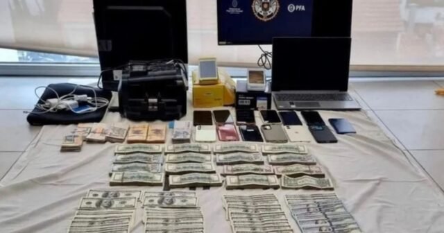 Entre os bens apreendidos, contou o número total de autoridades US$ 174.460, 18.500 reais, 13.720 pesos uruguaios, 1.061.000 dólares sim 2.817.6600 pesos argentinos. Além disso, eles sequestraram Sete carros top, Quatro grandes motores, Dois sangues, 30 números de telefone, 11 computadores e uma grande quantidade de informações que podem ser relevantes.