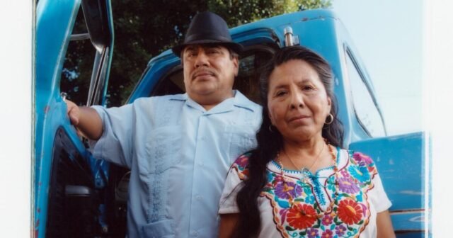 O dia desta sessão de fotos é cheio de alegria que você vai lembrar por muito tempo. Em “Trokas Duras”, o som era o mesmo – uma experiência que ainda é palpável para El Barrio, Nancy e Garcia. O filme não evita as agruras da vida do jornalero — a luta está embutida nas conversas entre os personagens, que estão unidos pelas experiências compartilhadas — não é apenas o fim da história. Quando chegamos aos momentos finais do filme, começamos a entender o que acontece depois de tanto trabalho. O caminhão para em uma clareira, um sistema de som DIY empilhado como um altar, uma luz laranja fluindo através dos galhos das árvores sombreando o céu noturno. “La Cumbia Jornalera”, interpretada por Los Jornaleros Del Norte, está em alta. Os jornaleros dançam, giram, pisam. Eles estão aqui. Eles são gratuitos.