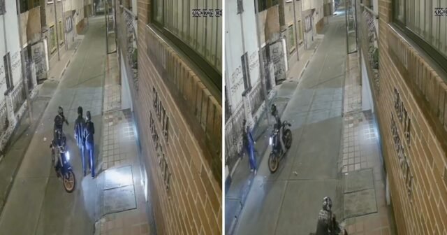 Câmeras de segurança no local registraram o momento Um casal foi preso por dois homens em uma motocicleta no último domingo, 15 de fevereiro, que pretendiam roubar seus pertences no meio da rua.