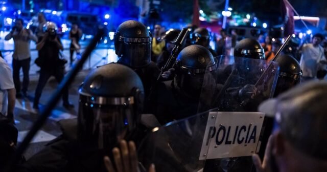 Vários membros da Polícia Nacional acusaram os manifestantes durante a marcha para exigir a demissão de Sánchez (Diego Radamés – Europa Press)