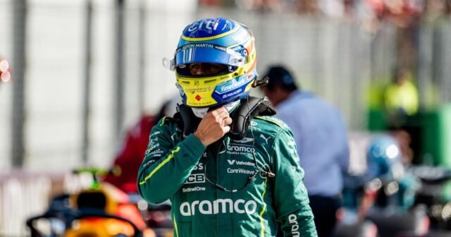 O piloto Fernando Alonso Fire (Aston Martin) diz “com 20 pontos adicionais do que a pausa pelo ônibus para 25 de 53.