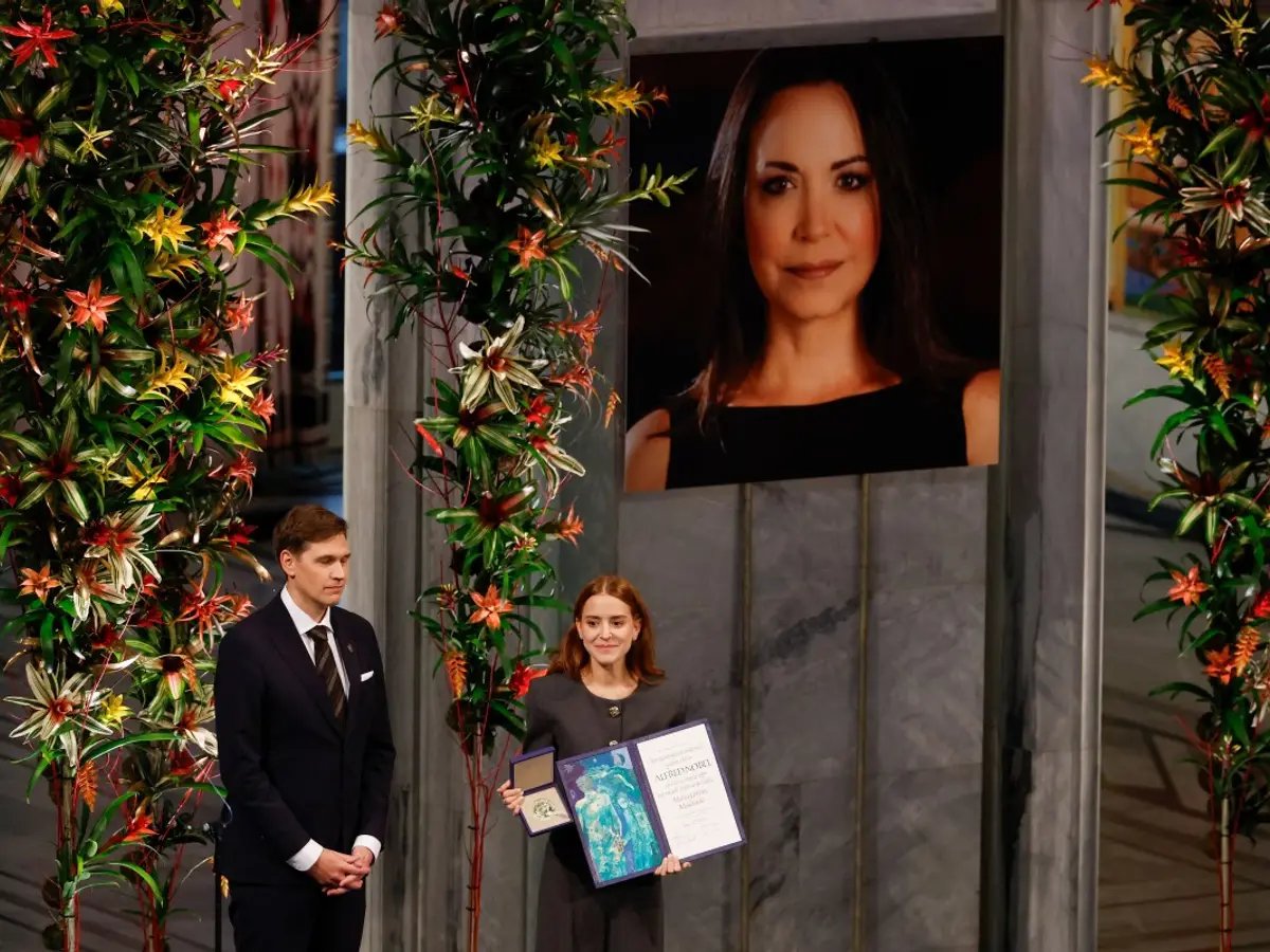 A filha de Maria Catina Machado, Ana Catina Sosa, recebeu o Prémio Nobel Sosa da sua mãe em Oslo, numa cerimónia luxuosa na quarta-feira. Machado, um proeminente líder da oposição venezuelana e ganhador do prestigiado prêmio, não pôde comparecer ao evento especial. Ana Catina Sosa leu uma mensagem da sua mãe, que enfatizou a necessidade de ruptura da democracia para apoiar o desejo de liberdade.