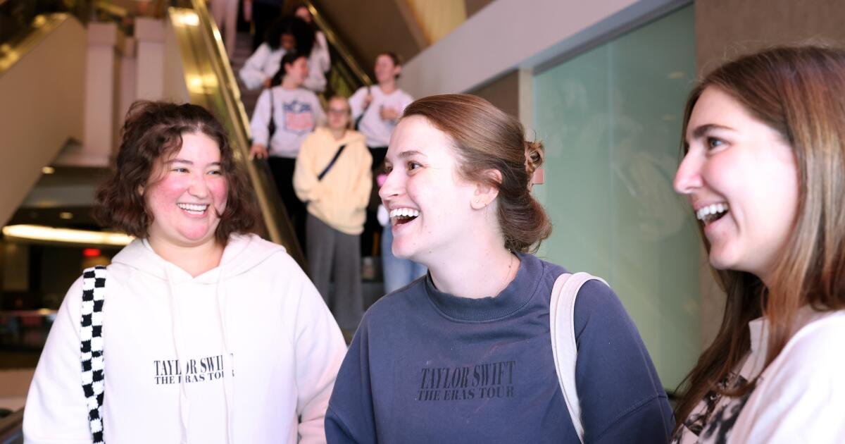 Os lençóis e seus amigos Sarah Bord, 29, e Ariana Diaz, 30, foram sequestrados com uma atmosfera tranquila no Auditorium, especialmente nos filmes “The Eras Tour”. “Eles estavam preocupados com o álbum que poderia ser novo demais para as pessoas sentirem uma música e dança.
