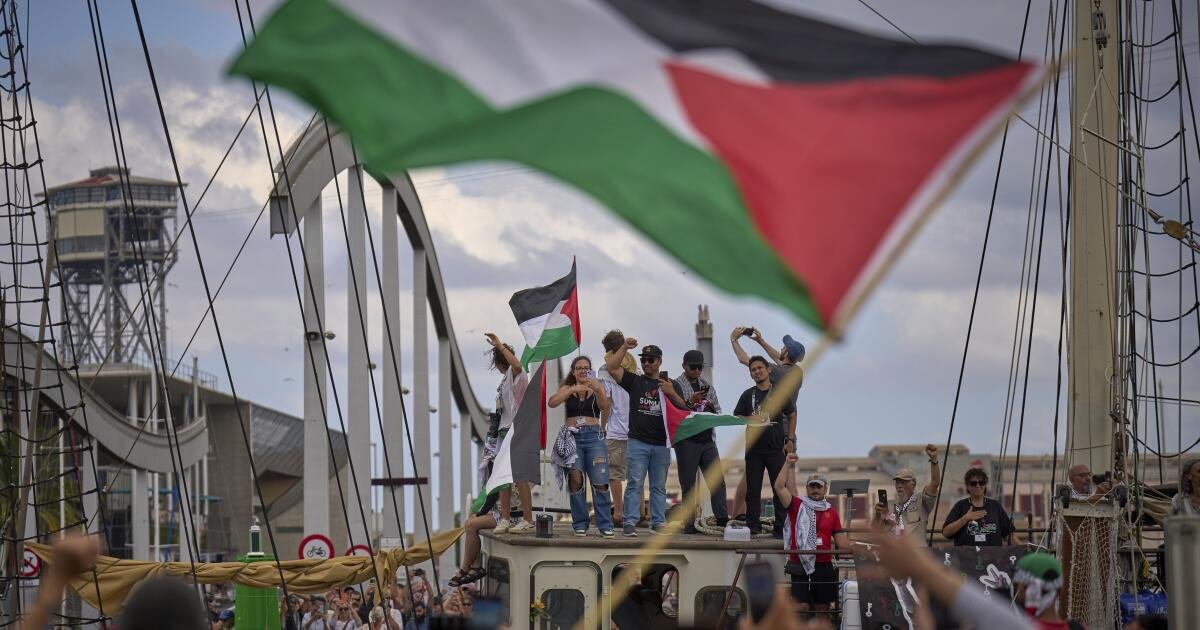 Barcelona, Espanha – A flotula flotular de Barcelona, em Gaza, com humanitários e ativistas, e ativistas compareceram à flor dos longos israelenses.