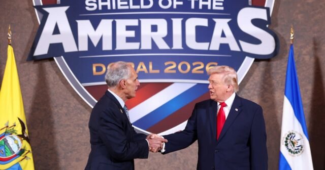 Donald Trump sentou-se com os presidentes dos países da região durante a cúpula do “Escudo das Américas Doral 2026”, evento que visa fortalecer a cooperação hemisférica.