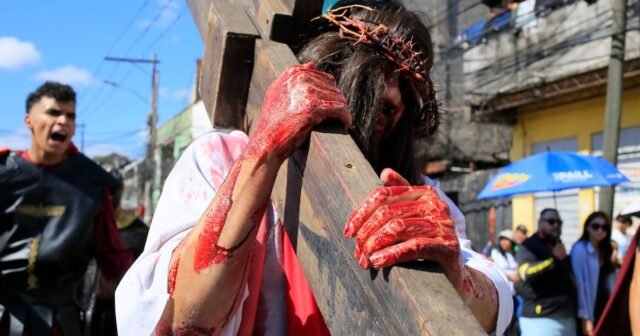 ele Via Sacra na Sexta-Feira Santafeito lá Tegucigalpa e repetido nas principais cidades do país, reunindo milhares de pessoas no trabalho de fé e meditação. Hondurasque tem uma população de 10 milhões, é caracterizada pela maioria dos católicos, e o Semana da Páscoa É uma das manifestações religiosas com maior enraizamento e contribuição para a vida social. Na capital, um dos tapetes mais longos, feito por dezenas de homens e mulheres contratados pela Alcaldiamais de 600 metros no Avenida Cervantesserviu de palco para a procissão Santo enterro.
