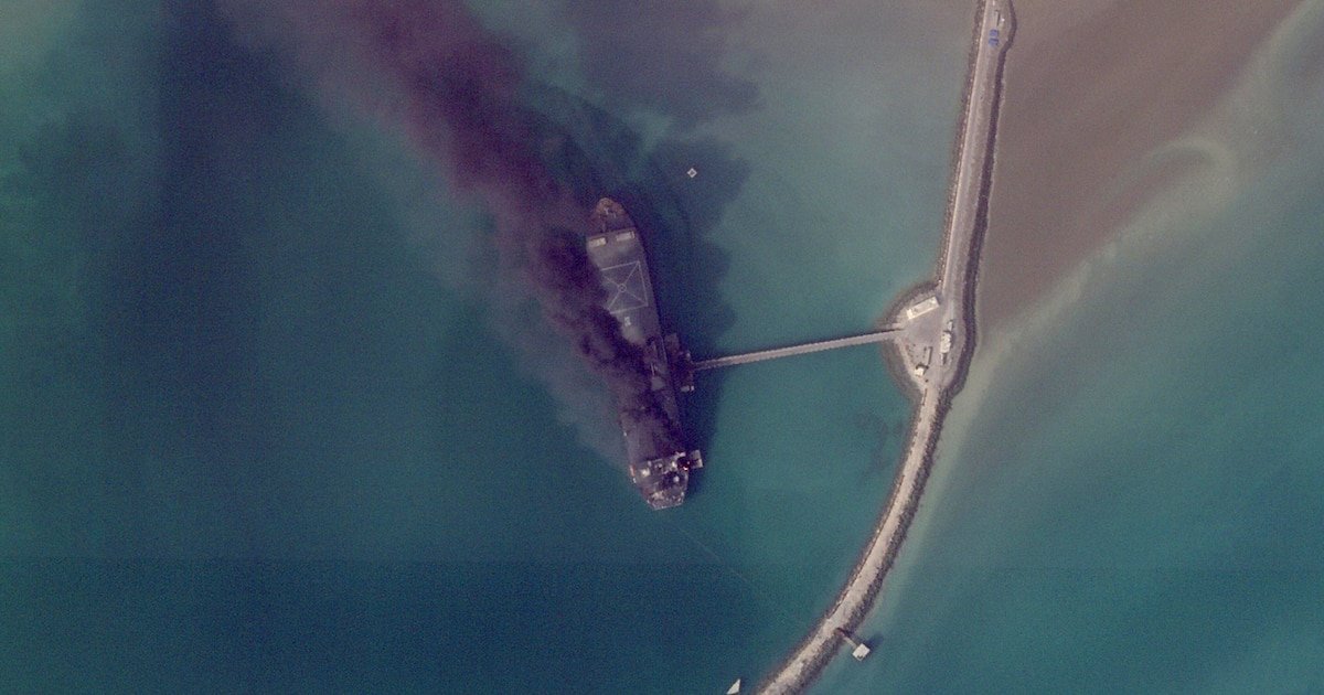 Deixar primeira imagem de satélite publicado após o início do show de guerra no Irã navio em chamas em Bandar Abbas e uma casa em ruínas na base militar dos EUA no Bahrein. O dispositivo, capturado por Planet Labs PBC e outras empresas fornecem dados não publicados sobre danos em grandes instalações no Golfo Pérsico.