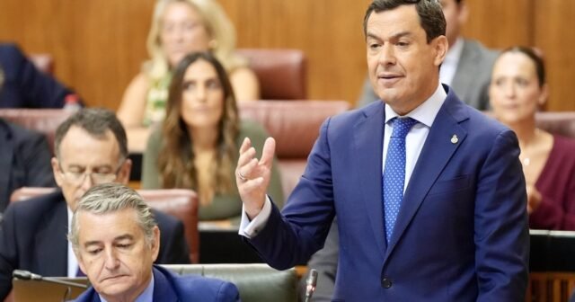 O presidente da Andaluzia June de Andalucía, Juanma Moreno na PARTORIANA PLEALACCIONAL. Em 25 de setembro de 2025 (María José López/Europa Press)