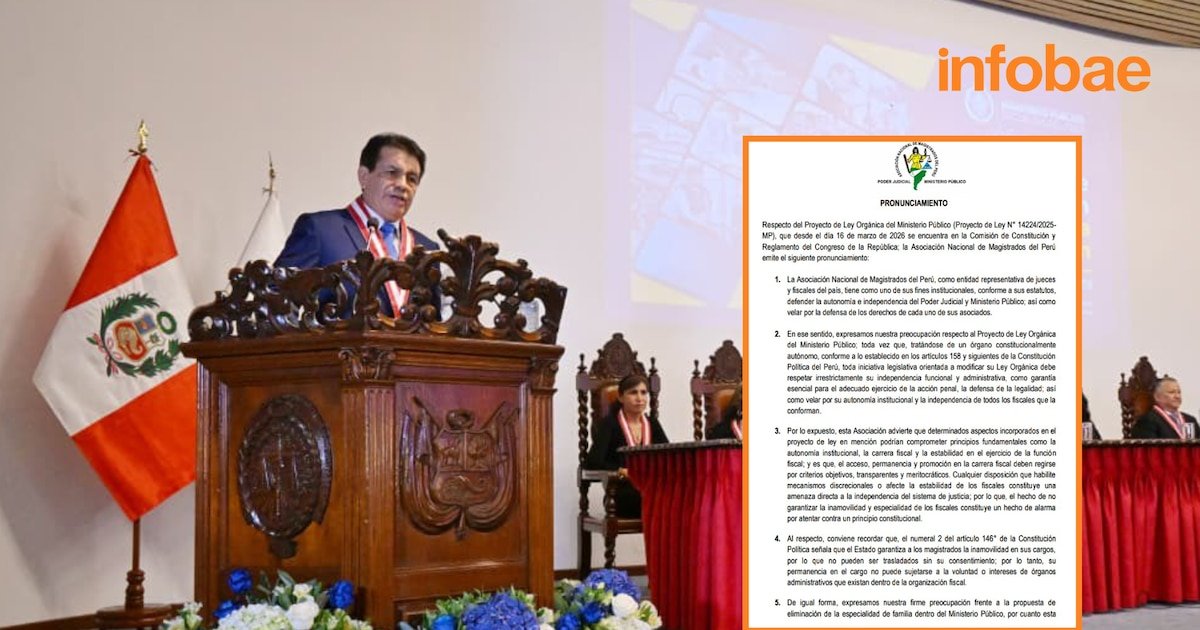 euAssociação Nacional de Juízes do Peru emitiu um comunicado expressando preocupação Projeto de Lei Orgânica do Ministério do Estado (Projeto de Lei nº 14.224/2025-MP), apresentado pelo Procurador-Geral da República, Tomás Gálvez, e em Comissão Constitucional do Congresso em vigor a partir de 16 de março de 2026. A agência, que representa juízes e promotores, alertou que a proposta poderia afetar princípios importantes do sistema de justiça.